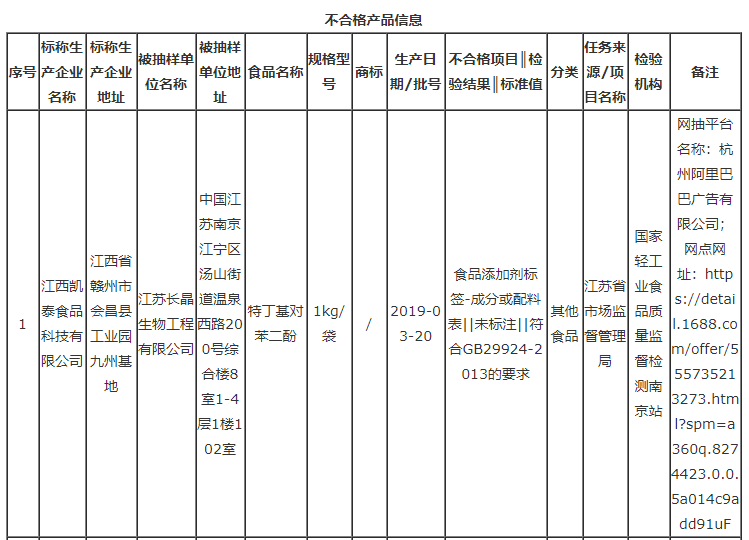 3月24日,江蘇省市場(chǎng)監(jiān)督管理局發(fā)布2021年第16期食品安全抽檢信息,江蘇省市場(chǎng)監(jiān)督管理局完成省級(jí)食品安全監(jiān)督抽檢任務(wù)891批次,涉及糧食加工品、調(diào)味品、肉制品、豆制品、糕點(diǎn)、食用農(nóng)產(chǎn)品、嬰幼兒配方食品和其他食品,檢出不合格樣品9批次。&...[詳情]